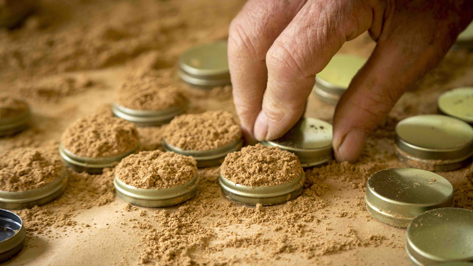 Snuff is a finely ground tobacco that can be either moist or dry. It is inhaled (snuffed) through the nose or placed between the gum and cheek (moist snuff) to deliver nicotine. Dry snuff is used by inhaling the powder through the nose, while moist snuff is typically placed in the mouth. Moist snuff is often sold in small pouches or cans and is used similarly to chewing tobacco.